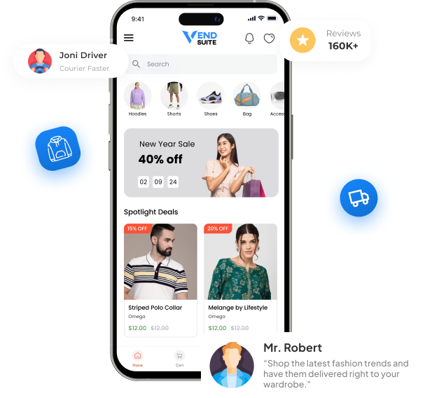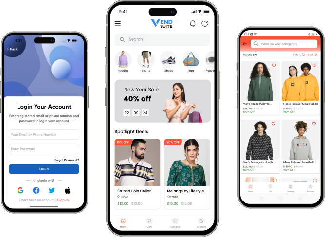 VENDSUITE employs advanced AI technology to streamline the website and app development process, enabling you to launch your fashion marketplace quickly and efficiently.